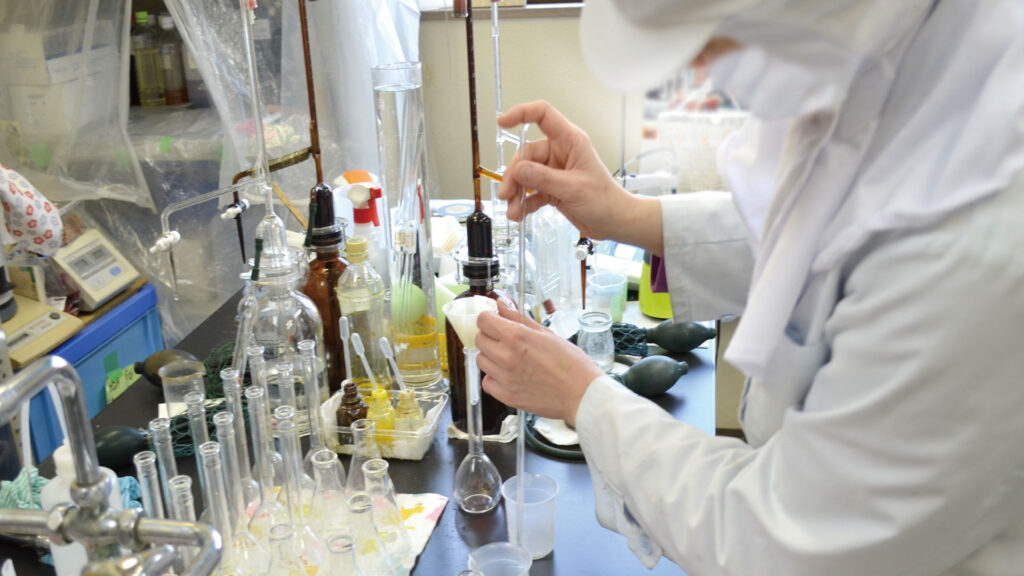 今回は、大利根漬の品質管理部にお邪魔して、梅商品の品質を守るために何をしているのかをお伺いしました。品質管理部では、原料の栽培管理から製品管理に至るまで、一貫して全ての工程管理を行っています。日々、丁寧かつ確実に行う分析業務は、製品の品質を守る上で非常に重要な役割になります。また、工場内外の衛生管理や従業員の健康指導も、毎日の重要な業務の一つです。品質管理部の担当者に、具体的な仕事内容やこだわり、苦労ややりがいなどを教えていただきました。