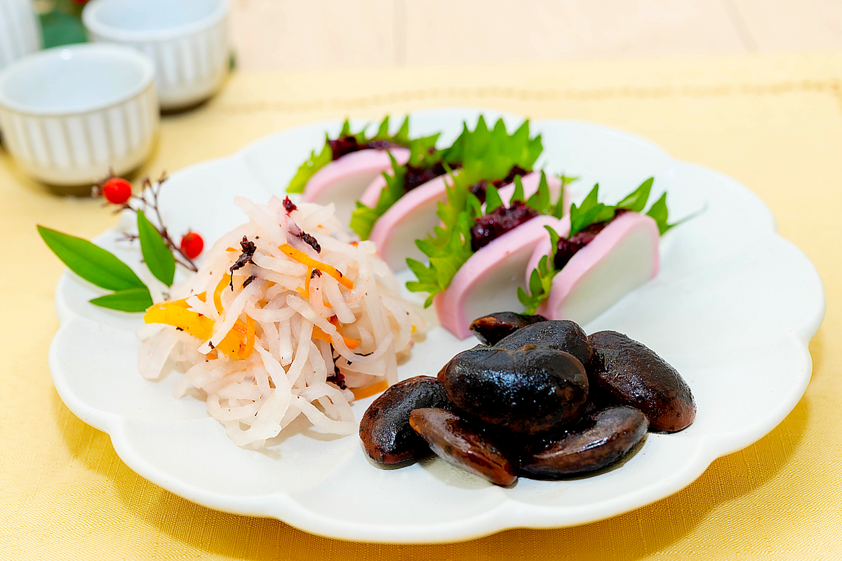 残ったおせちに梅しそを
